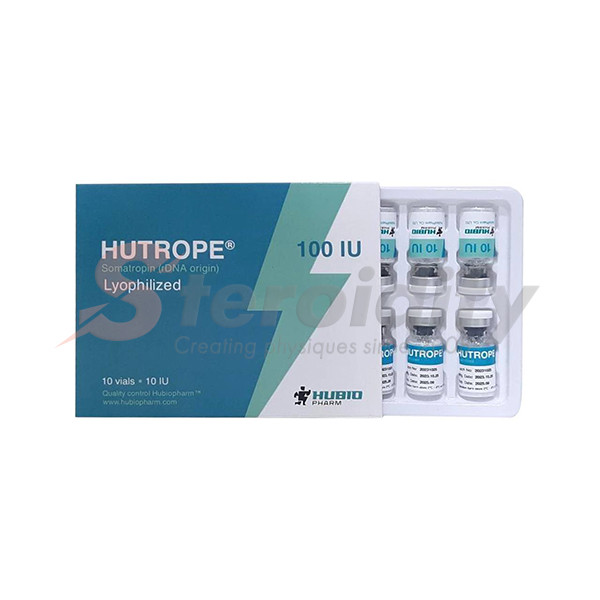 Hutrope Liophilized 100 IU US contains somatropin, commonly known as human growth hormone (HGH). HGH is a peptide hormone responsible for stimulating growth, supporting cell repair and regeneration, and encouraging the production of IGF-1. It also plays a role in fat metabolism by increasing free fatty acids and can influence blood glucose levels.